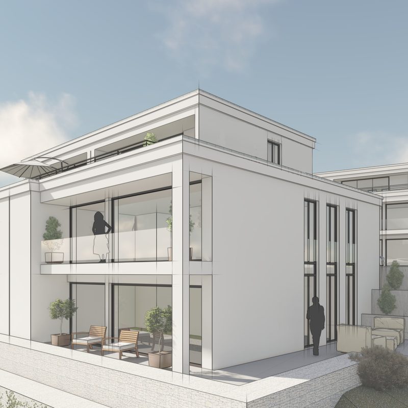 Zeitlose, transparente, kubische Architektursprache – Funktionalität neben Energieeffizienz und Wertbeständigkeit – wirtschaftliches Projektmanagement